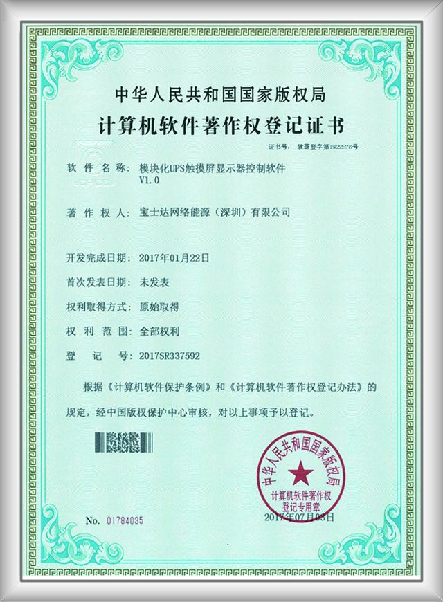 一體化UPS系統(tǒng)軟件著作權(quán) |